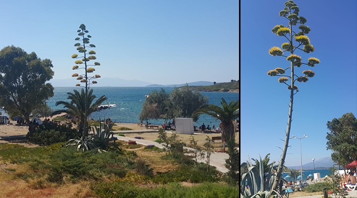 SONKALE- Mavi Ege Villalar?'n?n tam kar??s?ndaki plaj?n giri?inde yer alan agave bitkisini kimin dikti?i bilinmiyor. Agavenin yakla??k 2000 y?l?ndan beri orada oldu?u belirtildi. Bir Ild?r sakini, bitkiyi önceleri belediyenin dikmi? olabilece?ini dü?ündüklerini ancak daha sonra yabani bir tür oldu?unu anlad?klar?n? söyledi. Mucize bitki olarak adland?r?lan agavenin zaman zaman plaj i?letmecisi ve site sakinleri taraf?ndan suland??? ifade edildi.
