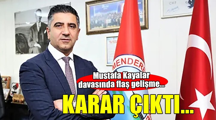 SONKALE?ZM?R-Menderes Belediye Ba?kan? iken, ?çi?leri Bakanl??? taraf?ndan görevden al?nan Mustafa Kayalar'?n davas?nda karar ç?kt?. ?zmir Bölge Adliye Mahkemesi, Kayalar'?n hakk?ndaki tüm suçlamalardan beraat etmesine hükmetti.
