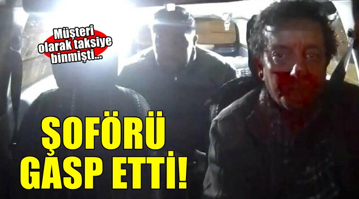 Olay, dün saat 22.00 s?ralar?nda Konak ilçesi E?refpa?a semtinde meydana geldi. Kimli?i belirsiz ki?i, evli ve ikiz çocuk babas? Tayfun Özi?çiler'in kulland??? taksiye bindi. Bayrakl? ilçesine gidece?ini söyleyen ki?i, ?ss?z bir noktada Özi?çiler'in s?rt?na cebinden ç?kard??? sivri bir cisim dayad?. Kolunu da Özi?çiler'in boynuna dolayan ?üpheli, 2 bin TL gasbedip, kaçt?. O anlar, araç kameras?na yans?d?.