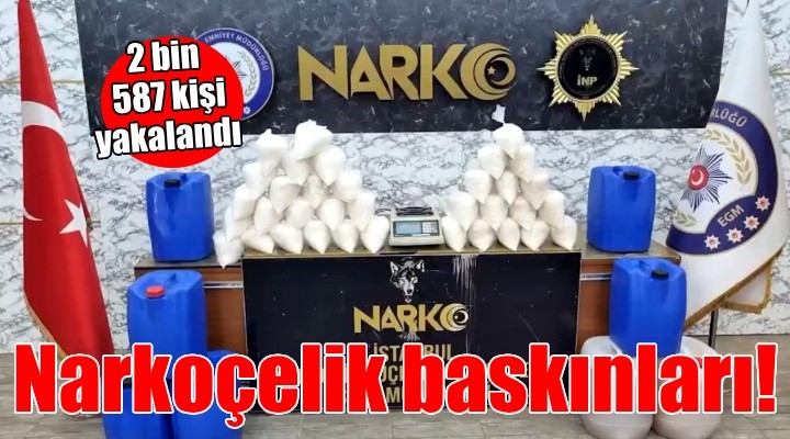 Bakan Yerlikaya, sosyal medya hesab?ndan yapt??? aç?klamada, Cumhuriyet ba?savc?l?klar? ile Emniyet Genel Müdürlü?ü Narkotik Suçlarla Mücadele Ba?kanl??? koordinesinde 77 ilde uyu?turucu imalat ve ticaretine yönelik 'Narkoçelik-45' operasyonlar? düzenlendi?ini belirtti. Buna göre; 6 bin 497 ekip ve 16 bin 168 personelin kat?l?m?yla son 3 haftada gerçekle?tirilen, 30 hava arac? ve 63 narkotik dedektör köpe?in kullan?ld??? operasyonlarda 2 bin 587 ?üpheli yakaland?. Yap?lan aramalarda, 4 ton 31 kilogram uyu?turucu madde, 2 milyon 244 bin 148 uyu?turucu hap ele geçirildi. Yerlikaya, operasyonlar? koordine eden Cumhuriyet ba?savc?l?klar? ile operasyonlar? gerçekle?tiren polisleri tebrik etti.