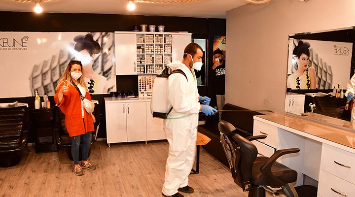 Narl?dere Belediye Ba?kan? Ali Engin “Pazartesi gününden itibaren salg?n sürecinde yeni bir döneme giriliyor. Buna haz?r olma aç?s?ndan tüm berber ve kuaförlerimizi ilaçlad?k ve mü?terilerin kullan?m?na haz?r hale getirdik. Kurallara uyulmas?n? önemle rica ediyoruz” dedi.