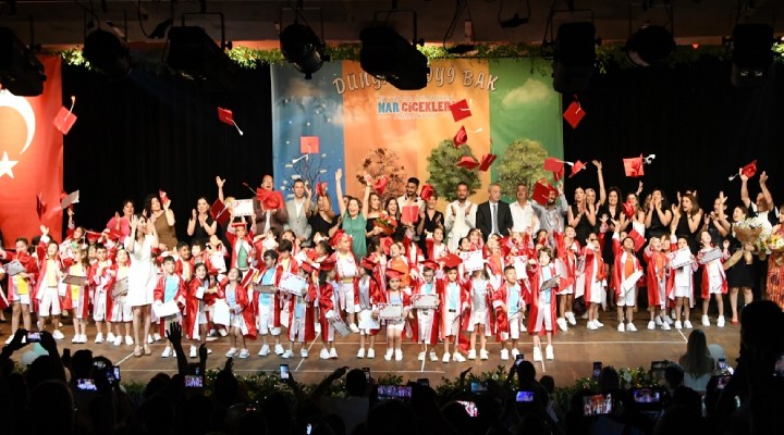 Nar Çiçekleri için Narl?dere Belediyesi Atatürk Kültür Merkezi’nde (AKM) mezuniyet töreni düzenlendi. Geceye, Narl?dere Belediye Ba?kan Yard?mc?lar? ?smail Ay ve Ça?r? Sofu, CHP Narl?dere ?lçe Ba?kan? Mesut Durgun, CHP Narl?dere Kad?n Kollar? Ba?kan? Ömür Oral Gürokur, Narl?dere Belediye Meclis Üyeleri Halil Sürücü ve Esengül Kaleli, Narbel A.?. Genel Müdürü Cem Yüce???k ve veliler kat?ld?. Sayg? duru?u ve ?stiklal Mar?? ile ba?layan gecede mezun olan ö?renciler, drama gösterileri sundu. Barkovizyon gösteri ile devam eden gecede minikler, jimnastik gösterisi yapt?.