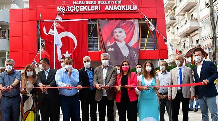Narl?dere Belediyesi'nin Narl? Mahallesinde yap?m?n? tamamlad??? Narçiçekleri Anaokulunun 2. ?ubesi 75 ö?rencisi ile kap?lar?n? açt?! Düzenlenen aç?l?? törenine Belediye Ba?kan? Ali Engin ve e?i ?lke Engin, CHP Parti Meclisi Üyesi Ednan Arslan, ?zmir Milletvekili Sevda Erdan K?l?ç, Güzelbahçe Belediye Ba?kan? Mustafa ?nce, Narl?dere ?lçe Ba?kan? Mesut Durgun, meclis üyeleri, muhtarlar, sivil toplum kurulu?lar?n?n temsilcileri ve Narl?dereliler kat?ld?. 2 kat in?a edilen e?itim yuvas?, Milli E?itim standartlar?na uygun olarak haz?rland?. 3-6 ya? aras? 75 ö?renciye hizmet verecek anaokulu 5 s?n?fta hizmet veriyor. ?çinde uyku odas? ve oyun bahçesi de yer al?yor.