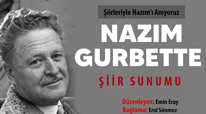 Buca Belediyesi, Türk ve dünya edebiyat?n?n önemli isimlerinden ünlü ?air Nâz?m Hikmet Ran’? “Nâz?m Gurbette” isimli gösterim ile anmaya haz?rlan?yor. Nâz?m Hikmet’in en güzel eserlerinin yorumlanaca?? etkinlik, 24 Eylül Çar?amba ak?am? saat 20.00’de Buca Belediyesi Yar? Olimpik Yüzme Havuzu Konferans Salonu’nda gerçekle?tirilecek. Buca Belediyesi ve Yeni Ku?ak Köy Enstitülüler Derne?i Buca K?z?lçullu ?ubesi i? birli?i ile haz?rlanan gecede Batur Uyar, Emin Eray, Fuat Keyik, Hamide Sönmez, Nermin Sa?c?k, Nevriye Keyik, Recep ?ahin, Semihat Karada?l? yorumlar?yla ?airin dizelerine can verecek. Gecede, solist Hülya Tümerdem ve müzisyen Erol Sönmez türküleriyle ?iirlere e?lik edecekler. Öte yandan Buca Belediyesi ana hizmet binas? önünden saat 19.30’da etkinlik için ücretsiz araç kald?r?lacak.