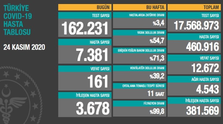 Bilim Kurulu toplant?s? sonras? aç?klama yapan Sa?l?k Bakan? Fahrettin Koca, koronavirüs salg?n? nedeniyle ya?anan yeni can kayb?n? ve hasta say?s?n? aç?klad?. Türkiye’de bugün 168 ki?inin hayat?n? kaybetmesiyle toplam 12 bin 840’a yükseldi. Yeni hasta say?s? da 6 bin 814 artarak 467 bin 730 oldu. ?yile?en hasta say?s? da 3 bin 911 artarak 3852 bin 740 oldu. Sa?l?k Bakan? Koca, yeni hasta say?s?n?n 6 bin 814 oldu?unu belirtirken bugünkü vaka say?s? 28 bin 351 vaka tespit edildi.