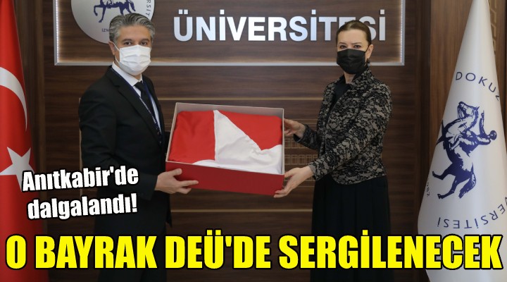 Türkiye’nin ilk Bayrakbilim ve Türk Bayraklar? Müzesi’nde sergilenen bayrak koleksiyonu her geçen gün büyümeye devam ediyor. Müze müdürü Ö?r. Gör. Ömer Durmaz, Gazi Mustafa Kemal Atatürk’ün ebedi istirahatgâh? An?tkabir'de dalgalanm?? Türk Bayraklar?ndan bir tanesini, Milli Savunma Bakanl???ndan Dokuz Eylül Üniversitesi ad?na teslim ald?.