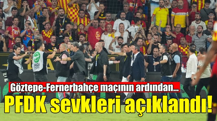 Söz konusu kar??la?mada çirkin ve kötü tezahürat, saha olaylar? ve merdiven bo?luklar?n?n bo? b?rak?lmamas? nedenleriyle Göztepe'nin, çirkin ve kötü tezahürat ile saha olaylar? gerekçeleriyle de Fenerbahçe'nin PFDK'ye sevk edildi?i ifade edildi.