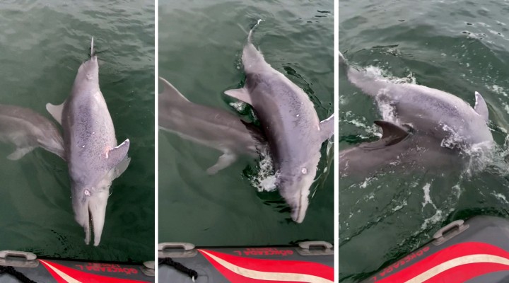 Ölen yunusu bir ba?ka yunus 6 günde karaya sürükledi!