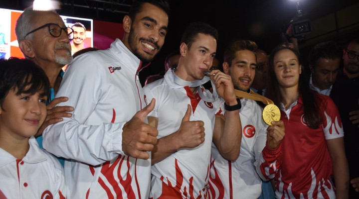 Gençlik Spor ?l Müdürlü?ü ve ?l Milli E?itim Müdürlü?ü, milli sporcular için Adnan Menderes Havaliman?’nda kar??lama töreni düzenledi. Törene yüzlerce ö?renci ellerinde ay-y?ld?zl? bayraklar ve pankartlarla kat?ld?. Sporcular?n aileleri, kulüplerindeki sporcu arkada?lar? ve Stuttgart’taki ?ampiyonada halkada alt?n madalya kazanarak ülkemize Dünya ?ampiyonas?’nda cimnastikte ilk madalyas?n? getiren 24 ya??ndaki ?brahim Çolak’?n bu y?l beden e?itimi ö?retmeni olarak atand??? Alia?a Helvac? Ortaokulu ö?rencileri de ellerinde ö?retmenlerini kutlayan pankartlarla ö?retmenlerini kar??lad?.