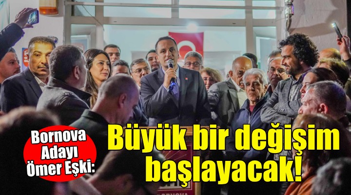 Bornova’n?n her aç?dan ?zmir’in parlayan y?ld?z? haline gelmesi için gayret göstereceklerini öne süren Ömer E?ki, “Kentsel estetik müdürlü?ü, kentsel tasar?m müdürlü?ü kurulup çok estetik, ??k bir Bornova olu?turmak istiyoruz. Otopark önemli bir s?k?nt?, Cemil Tugay ba?kan?m?zla Bornova’n?n merkezine katl? otopark yapma projemiz var. Parklar?n hem say?s?n? hem de niteli?ini yükseltece?iz. Dost marketleri tekrardan aç?p sosyal belediyecilik yapmak istiyoruz. Gençlik merkezini tekrardan aç?p, say?s?n? fazlala?t?rmak istiyoruz. Kütüphaneler Bornova’da üniversite ö?rencilerimize üç noktada e?itim deste?i vermek istiyoruz” dedi.