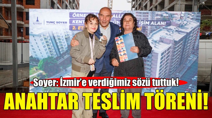 ?zmir Büyük?ehir Belediyesi’nin garantörlü?ünde, yerinde ve yüzde yüz uzla?? ilkeleri çerçevesinde Türkiye’ye örnek olacak ?ekilde hayata geçirdi?i kentsel dönü?üm çal??malar? tüm h?z?yla sürdürülüyor. 6 bölgede toplam 248 hektar alanda devam eden dönü?üm projelerinin bir etab?nda daha tapu sevinci ya?and?. Kar??yaka Örnekköy’de tamamlanan ikinci etab?n hak sahipleri tapular?n? ?zmir Büyük?ehir Belediye Ba?kan? Tunç Soyer'in elinden ald?. Törene Cumhuriyet Halk Partisi (CHP) ?zmir ?l Ba?kan? ?enol Aslano?lu, belediye meclisi üyeleri, siyasi parti temsilcileri, bürokratlar ve hak sahipleri kat?ld?.