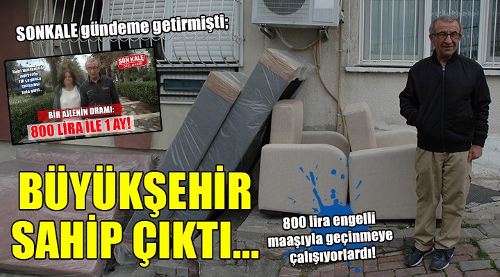 E?inin 800 liral?k engelli maa?? ile geçinmeye çal??t?klar?n? SONKALE'ye anlatan Veli Oruç'un, "Sadece engelli maa??m?z var. O da elektrik, su, aidata yetmiyor. Gelirden daha çok giderimiz oluyor. 650 lira al?yordum. ?imdi 800 lira oldu. 450 lira elektrik, 120 lira su faturas? geliyor. Ayda 300 lira ile hangi aile geçinebilir? Bir ayd?r patates yeme?i yap?yoruz, öyle geçiniyoruz" sözleri sonras? ?zmir Büyük?ehir Belediyesi devreye girdi.