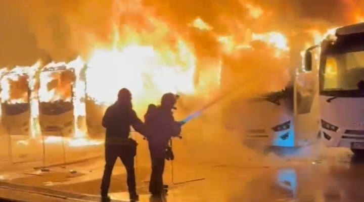 Alevler k?sa sürede di?er araçlara da s?çrarken, ihbar üzerine bölgeye jandarma, itfaiye, AFAD ve sa?l?k ekipleri sevk edildi. ?tfaiye ekiplerinin müdahale etti?i yang?n kontrol alt?na al?narak söndürülürken, 4 otobüs, 9 midibüs ve 2 minibüs tamamen yanarak kullan?lmaz hale geldi.