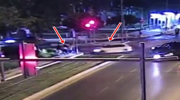 Kaza an? ise ?ZUM kameras?na saniye saniye yans?d?. Kaza sonras? sosyal payla??m sitesinde payla??m yapan ?zmir Büyük?ehir Belediyesi Genel Sekreteri Bu?ra Gökçe, "K?rm?z? ????a uymayan sürücü önce tramvay yoluna sonra kald?r?ma girerek 3 yayan?n yaralanmas?na sebep oldu. Çok üzgünüz. Yaral?lar?m?z hastaneye kald?r?l?yor. Say?n sürücüler, lütfen trafik i?aretlerine uyal?m. H?z yapmayal?m!" ifadesine yer verdi.