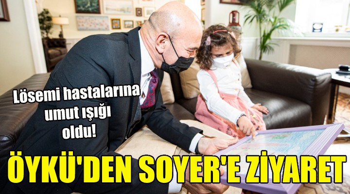 “Öykü Arin'e Umut Ol” kampanyas? ile lösemi hastalar?na umut olan Öykü Arin, annesi Eylem ?en Yaz?c? ve babas? Ça?da? Yaz?c? ile birlikte ?zmir Büyük?ehir Belediye Ba?kan? Tunç Soyer'i ziyaret etti.