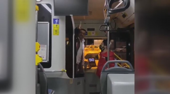 Yolcuyu darp etmeye çal??an ?oförü araya giren yolcular güçlükle engelledi. Otobüs ?oförünün maske takmad??? gözlenirken olay an? sald?r?ya u?rayan kad?n?n cep telefonu kameras?na yans?d?.