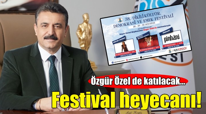 Festival co?kusunun ?imdiden tüm kenti sard???n? belirten Dikili Belediye Ba?kan? Adil K?rgöz; “Genel Ba?kan?m?z Say?n Özgür Özel’in aç?l???n? yaparak kentimizi onurland?raca?? 38. Dikili Kültür, Demokrasi ve Festivali çocuklar?m?z?, gençlerimizi ve tüm yurtta?lar?m?z? kapsayan etkinliklerle dolu dolu geçecek. Bu y?l festivalimizi Cumhuriyet’imizin ikinci yüzy?l?nda yar?nlar?m?z?n umudu Atatürk çocuklar?na arma?an ediyoruz. Festivalimizin aç?l???n? Çocuk Kortejimizle gerçekle?tirece?iz. Çocuklar?m?z için tiyatro, atölye etkinliklerimiz olacak. Belediyemiz Sadi Erdem Plaj Sporlar? Tesisleri’mizde çocuklar?m?z ve tüm yurtta?lar?m?z?n kat?ld??? Dikili Plaj Voleybolu Halk Turnuvas?’n? gerçekle?tirece?iz. Sevgi Yolu’nda pilates etkinli?imiz, Kent Ar?ivi ve Tan?t?m Merkezi’mizde , Kad?n Haklar? Park?’nda sergilerimiz, atölye çal??malar?m?z gerçekle?ecek. 3 gün sürecek festivalimiz kapsam?nda ülkemizin sevilen sanatç?lar?n? 75. Y?l Park?’nda halk?m?zla bulu?turaca??z. 75. Y?l Park?’nda 30 A?ustos Zafer Bayram? Airbadminton ?zmir ?l ?ampiyonas?’na ev sahipli?i yapaca??z. Festivalimizin son gününde Ebedi Ba?komutan?m?z Mustafa Kemal Atatürk önderli?inde elde edilen Büyük Zafer’in 102. y?l dönümünü 30 A?ustos Bayram? Zafer Kortejimiz ile co?kuyla kutlayaca??z. 3 gün boyunca Dikili’mizde ?ölen havas?nda geçecek festivalimize tüm yurtta?lar?m?z? davet ediyorum” ?eklinde konu?tu.