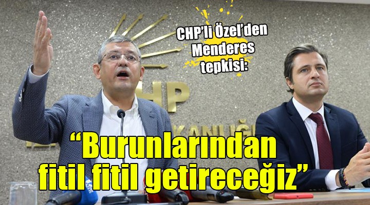 "Büyük bir suçlu var. Suçu Menderes ilçesini AK Parti'den almak. Halka yak?n ki?ili?i ile çal??kanl??? ile iyi ileti?imi ile Menderes ilçesini AK Parti'den ald?. AK Parti'nin nefretini kinini kar??s?nda buldu. Menderes Belediye Ba?kan?m?z Mustafa Kayalar kendisine yap?lan iftiralar kar??s?nda hakim kar??s?na ç?kt?. Hakim kar??s?nda bir gün boyunca sorguland?. Hakim kendisini tutuklamad?. Görevden al?nmas?n? talep edebilirdi, yapmad?. Görevine devam etmesi için kendisini tekrar gözalt? halini ortadan kald?rd?, belediyedeki koltu?una yollad? ama alamad?klar? her belediyedeki haz?ms?zl?klar? ile Süleyman Soylu devreye girdi ve kendisini görevden uzakla?t?rd?. Bir an önce göreve iade edilmesi Menderes halk?n?n verdi?i karar?n gere?idir. Bunun yap?lmad??? her gün ?udur: Oylar bize verilirse milli irade, verilmezse kirli irade. Ekrem ?mamo?lu ?stanbul'da kazand???nda aynen böyle yapt?lar. 'Seçim mundar oldu' dediler. Gittik hakeme.. Hakem karar?n? verdi?inde 806 bin farkla 'Bunlara Osmanl? tokad? ataca??z' diyen Cumhur ?ttifak?'na demokrasi tokad?n? att?. Menemen'de de Menderes'te de böyle olacak. Urla'da da olacak. Unutmad?k unutturmayaca??z. Menemen'de insanlar?n yüzüne bakamayacak haldesiniz. Kura çekilmi? herkesin önünde. M?z?kç?lar sonra mahkemeye gidiyorlar. Kirli ili?kilerle kendi istedikleri ki?iyi seçtirdiler. Kura hilesi, oyun bazl?kla Menemen'i al?p AK Parti'ye verdiler. Menemen'in AK Partili belediye ba?kan aday? Durmaz Bayraktar'd?. Kaybedince Süleyman Soylu taraf?ndan al?n?p emrindeki göç iradesine hukuk mü?aviri yap?ld?. Sonra ya?ananlardan sonra Menemen'e belediye ba?kan yard?mc?s? yap?ld?. Menemenlilerin 'Bu yönetmesin' dedi?i adam? bunlar getirip 'Bu yönetecek' diyor. Bunlar?n demokrasi anlay??? budur. Mustafa Kayalar'?n hakk?n? da Menderes'in hakk?n? da Menemen'in, Urla'n?n hakk?n? da soraca??z. Yerel seçimde fitil fitil burunlar?ndan getirece?iz. Bu üç ilçeye özel önlem vererek bizzat çal??aca??m. Haks?zl???n hesab?n?n sorulaca??n?n sözünü veriyorum.""