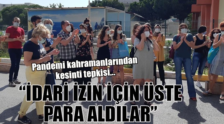SONKALE?ZM?R-Cumhurba?kan? Recep Tayyip Erdo?an imzas?yla 14 Nisan'da Resmi Gazete'de yay?nlanan genelge ile kamu kurumlar?nda çal??anlar Ramazan Bayram?'nda 2 buçuk gün idari izinli say?l?rken, maa? ödemeleri sonras? kesinti krizi ç?kt?. ?zmir'de yakla??k 4 bin 500 personelin çal??t??? ?zmir Katip Çelebi Üniversitesi Atatürk E?itim ve Ara?t?rma Hastanesi'nde, bir grup sa?l?k çal??an? ücretlerinde kesinti oldu?u gerekçesiyle alk??l? protesto eylemi yapt?.