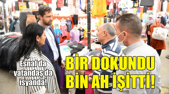 CHP ?zmir ?l Ba?kan? Yücel’e ?irinyer pazaryeri ziyaretinde CHP Buca ?lçe Ba?kan? Hacer Ta? Gültepe ve CHP ?zmir ?l Ba?kan Yard?mc?s? Y?ld?z Y?lmaz’da e?lik ederken, pazarc? esnaf? da ekonomik ?artlardan ve ya?ad?klar? zorluklardan dert yand?.
