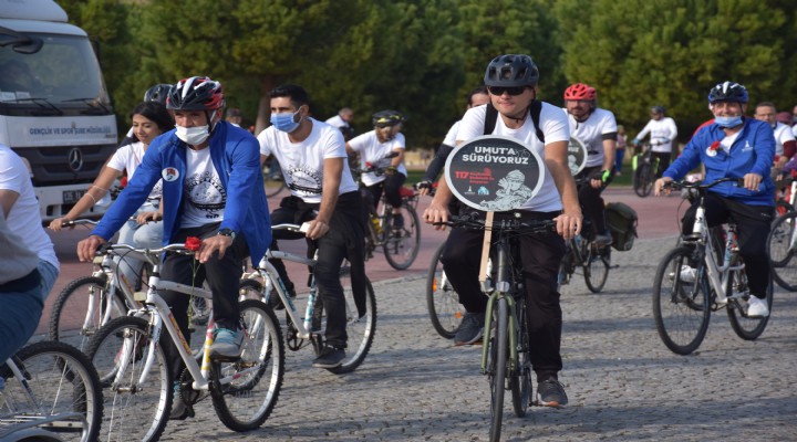 Do?anlar Apartman?'ndan 65 saat sonra sa? kurtar?lan ve umudun simgesi haline gelen Elif Perinçek'in (3) ayn? felakette ya?am?n? yitiren a?abeyi Umut Perinçek (7) ve hayat?n? kaybeden di?er canlar için bisiklet turu gerçekle?tirildi. Depremin y?k?c? etkisini gösterdi?i Bayrakl? ilçesindeki etkinlikte 117 bisikletli, A??k Veysel Rekreasyon Alan?'ndan y?k?lan Do?anlar Apartman?'na do?ru pedal çevirdi. ?zmir Büyük?ehir Belediyesi ve Gençlik ve Spor ?l Müdürlü?ü taraf?ndan 'Umut'a Sürüyoruz' slogan?yla düzenlenen anma etkinli?inde bisikletliler 'Çünkü Umut Herkese Laz?m' yaz?l? ti?örtleri giyerek bisiklet sürdü. Bisikletlilerin güvenli?i için ambulans ve polis ekipleri bölgede haz?r bekletildi.