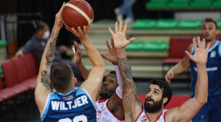 Telekom'a ise Wiltjer'in 30 say?s? yetmedi. Ye?il-k?rm?z?l?larda Yunus sakatl??? nedeniyle forma giyemedi. Seride ikinci kar??la?ma 15 May?s Cumartesi günü Ankara'da oynanacak. Kaf-Kaf rakibini ikinci maçta da ma?lup etti?i taktirde seride durumu 2-0'a getirip ad?n? yar? finale yazd?racak.
