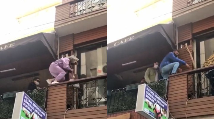 Kafedeki gençlerin balkondan balkona kaç?? anlar? cep telefonu kameras?na yans?d?. Görüntülerde, kafedeki gençlerin, s?rayla balkondan kaçma anlar? görülürken, bir ki?inin de "Çekmeyin, sak?n yay?nlamay?n" dedi?i duyuluyor.
