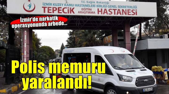 Olay, 25 Ekim'de saat 00.30 s?ralar?nda Konak ilçesi 845 Sokak'ta meydana geldi. Narkotik ?ube Müdürlü?ü ekipleri, ihbar üzerine bir eve gitti. Evde arama yapmak isteyen polis ekipleri ile ?üpheliler aras?nda arbede ç?kt?. Bu s?rada ?üphelilerden biri, polis memuru A.C.?. tabancayla ate? etti. Kur?unlar polis memurunun sa? baca??na, dizine ve kalças?na isabet etti. ?hbarla bölgeye sa?l?k ekipleri sevk edildi. Yaral? polis, sa?l?k ekibinin müdahalesinin ard?ndan Tepecik E?itim ve Ara?t?rma Hastanesi'ne kald?r?ld?. ?üphelilerden 20 suç kayd? bulunan H.E. (38) ile 4 suç kayd? olan M.E. (31) olay yerinde gözalt?na al?n?rken, 9 ayr? suç kayd? bulunan ?.A. (25) kaçt?. Evde yap?lan aramada, olayda kullan?lan tabanca ele geçirildi.