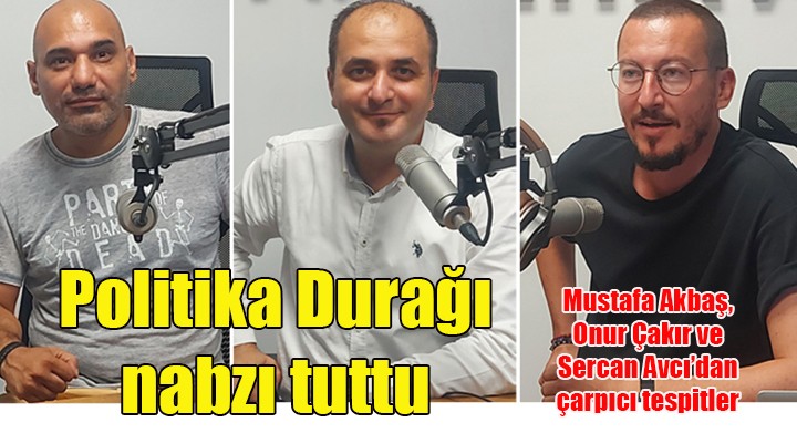 SONKALE?ZM?R- Gazeteciler Sercan Avc?, Onur Çak?r ve Mustafa Akba?, 94,5 frekans?ndaki Radyo ?zmir’de yay?nlanan Politika Dura?? program?nda, kent ve ülke siyasetinin nabz?n? tuttu. Bu haftaki programda gündem genel seçime giderken genelde ve yerelde aç?klanan anketler ile il ba?kanlar?n?n milletvekili ?ans? ve olas? istifalar?nda yerlerine kimlerin göreve gelebilece?i oldu.