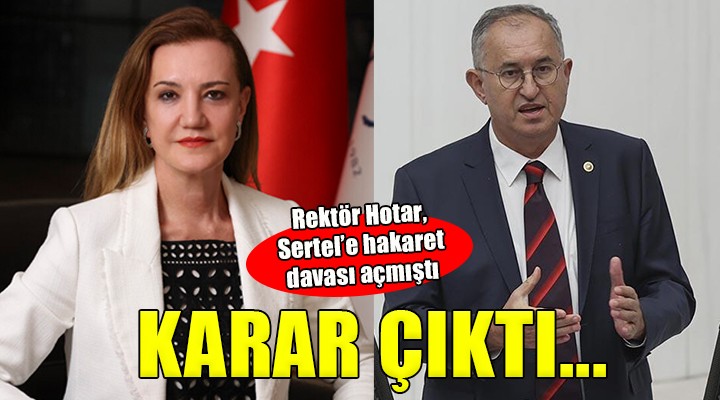 SONKALE?ZM?R-?zmir 9. Asliye Hukuk Mahkemesi, Dokuz Eylül Üniversitesi Rektörü Nükhet Hotar taraf?ndan CHP ?zmir eski milletvekili Atila Sertel hakk?nda aç?lan davay? reddetti.