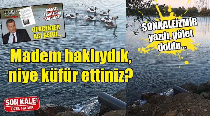 Abdullah ÇELEB?/SONKALE?ZM?R (ÖZEL)-Tire'deki belediyeye ait Gölet Rekreasyon Alan?'n?n yürek s?zlatan halini SONKALE?ZM?R gündeme getirmi?ti. Daha önce 2 metreye yak?n yüksekli?i olan göletteki su miktar?n?n leyleklerin yürüyebilece?i seviyeye indi?ini ve çevredeki çöplerle içki ?i?elerininin foto?raflar?n? yay?nlayan SONKALE?ZM?R, ?Y? Partili Ba?kan S. Atakan Duran'?n maa?l? trollerinin çirkin sald?r?lar?na hedef olmu?tu. Tire Belediyesi'nden konuyla ilgili tek sat?r aç?klama gelmezken, Ba?kan S. Atakan Duran'?n yak?n çal??ma arkada?? olan troller, a??r hakaret, küfür ve tehditlerle SONKALE?ZM?R'e sald?rm??t?.