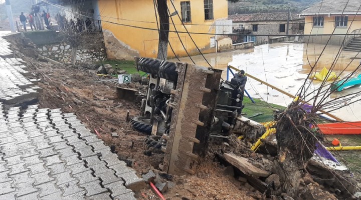 Çökme an?nda duvar üzerindeki yolda park halinde bulunan i? makinesi de okul bahçesine devrildi. Hafriyat firmas?na ait i? makinesi, vinç yard?m?yla devrildi?i yerden ç?kar?ld?.