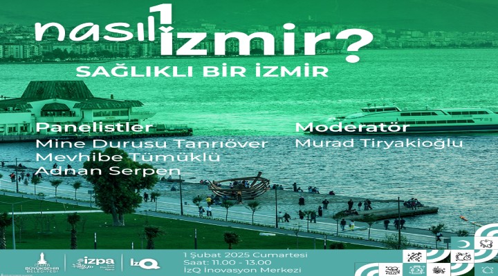 ?zmir Büyük?ehir Belediyesi ?zmir Planlama Ajans? (?ZPA) taraf?ndan düzenlenen ve ?zmir’in gelece?ini ?ekillendirecek ?zmir Vizyon 2074 Çerçeve Belgesi’nin haz?rlanmas?na girdi olu?turacak “Nas?l Bir ?zmir” panel serisi devam ediyor. Serinin, “Sa?l?kl? Bir ?zmir” ba?l?kl? yedinci paneli, 1 ?ubat Cumartesi günü ?zQ ?novasyon Merkezi’nde yap?lacak.