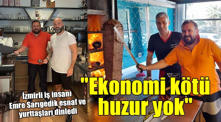 SONKALE?ZM?R-?zmir'de i? ve spor camias?n?n sevilen ismi Emre Sar?gedik, son dönemde esnaf ve yurtta?larla bir araya gelerek dertlerini dinledi. Küçük Kulüp Derne?i ve Ege Tenis E?itim Vakf? Ba?kan? olan Sar?gedik, sahadan ald??? izlenimlerde ekonomik ko?ullardan kaynakl? büyük s?k?nt?lar oldu?una dikkat çekti.