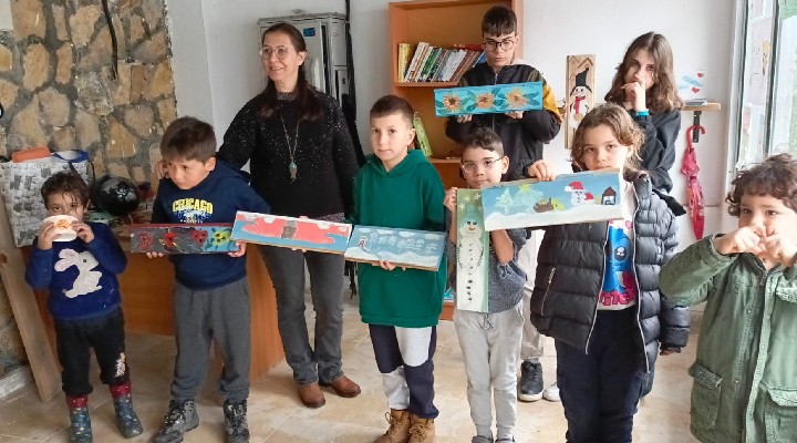 Seferihisar Gölcük Kalk?nd?rma ve Yard?mla?ma Derne?i bünyesinde ba?lat?lan kurslara kom?u köy Gödence'den de çocuklar zaman zaman kat?l?m sa?l?yor. Gölcük'te ya?ayan resim ö?retmeni Güliz Da?l?'n?n ö?retiminde yap?lan kurslara köylü anne Elveda Güngör, konu?ma engelli o?lunun boyal? f?rçalar?n? y?karak, kurs verenlere yard?mc? olmaya çal???yor. Elveda Anne, "Toycan'? kendi getiriyor. O?lu Toycan'? saati 1500 tl ye Seferihisar konu?ma terapisine götürüyorum. Ama resim yapmaktan çok ho?lan?yor. Mutlu oluyor çocu?um. Bende i?i gücü b?rak?p bu kursa getiriiyorum*" diye konu?tu.