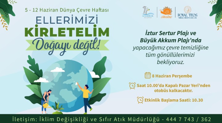 Seferihisar Belediyesi ?klim De?i?ikli?i ve S?f?r At?k Müdürlü?ü’nün, Dünya Çevre Haftas? etkinlikleri kapsam?nda Cittaslow ve Royal Teos i?birli?i ile düzenleyece?i etkinli?e, çevreye duyarl? tüm vatanda?lar davet edildi.