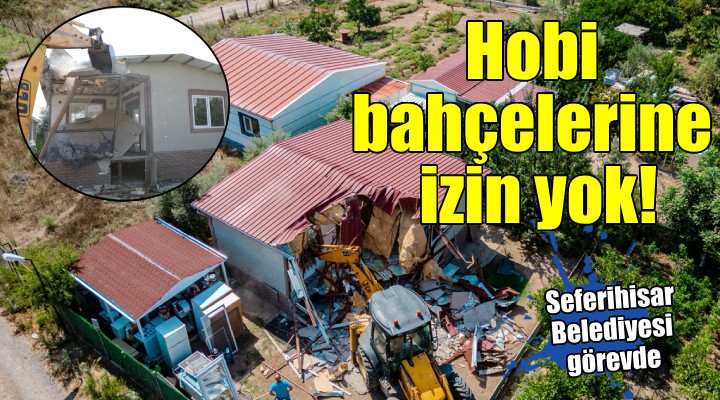 Seferihisar Belediyesi Yap? Kontrol Müdürlü?ü taraf?ndan 5403 Say?l? Toprak Koruma Kanunu’nun Hobi Bahçeleri ile ilgili maddelerine ayk?r? in?a edildi?i gerekçesiyle, ilçedeki yakla??k be?yüz hobi bahçesine y?k?m uyar?s? yap?ld?. Ruhsats?z, izinsiz ve amac? d???nda kullan?lan evlerin y?k?m? Kavakdere Mahallesi’nde bulunan hobi bahçeleri ile devam ediyor.