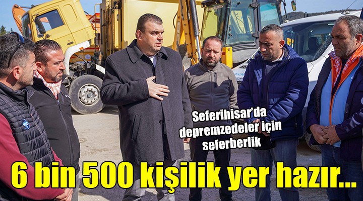 Yard?m kampanyas?n?n yan? s?ra Seferihisar’daki otel ve pansiyon i?letmecileri ile e?yal? kiral?k ev sahiplerine Dayan??ma Çat?s? kampanyas? ile ça?r?da bulunan Seferihisar Belediyesi, S??ac?k, Akarca ve Ürkmez’deki otellerden 350 oda ve 50 adet evin depremzedelere açt???n?n bilgisini verdi. Önümüzdeki günlerde en önemli ihtiyac?n uzun vadeli bar?nma olaca??n? belirten Ba?kan Yeti?kin; "Depremin ilk haftas?nda arama kurtarma ve bölgedeki insanlar?n g?da ve su gibi temel ihtiyaçlara eri?mesi sa?land?. Milyonlarca vatanda??m?z ?u an d??ar?da. Bir an önce onlara s?cak ve güvenli bir ortam sa?lamak için Seferihisar’daki otel i?letmecilerine ve ev sahiplerine ça?r? yapt?k. Sa?olsunlar ikinci günde 6500 ki?ilik konaklama kapasitesine eri?tik. Kapasitenin artmas? için daha fazla ba?vurunun gelmesini bekliyoruz’’ dedi.