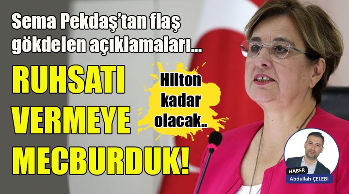 Söz konusu alanla ilgili imar planlar?n?n 2008'de ?zmir Büyük?ehir Belediyesi ile Konak Belediye meclislerinden geçti?ini vurgulayan Sema Pekda?, "Koruma Kurulu'ndan ve Çevre ve ?ehircilik Bakanl???'ndan gerekli izinler de al?nm??. Bizim burada yapt???m?z sadece bu i?i ruhsata ba?lamak. Yönetmelik ve plan kararlar?na uygun bir talep geldi?inde belediye olarak bunu denetledikten sonra e?er ayk?r? bir durum yoksa ruhsat verilir. Biz bunu yapt?k. ?öyle dü?ünün sizin 5 kat imarl? arsan?z var ve belediyeye ba?vuru yapt?n?z. Belediye 5 kat de?il de 2 kat için size ruhsat verirse. Hukuki olarak 3 katl?k zarar?n?z? kar??lamak durumunda kal?r. Burudaki konu ki?ilerin takdiri ile ilgili de?il. Biz kanunlar?n uygulay?c?s? konumundayd?k" diye konu?tu.