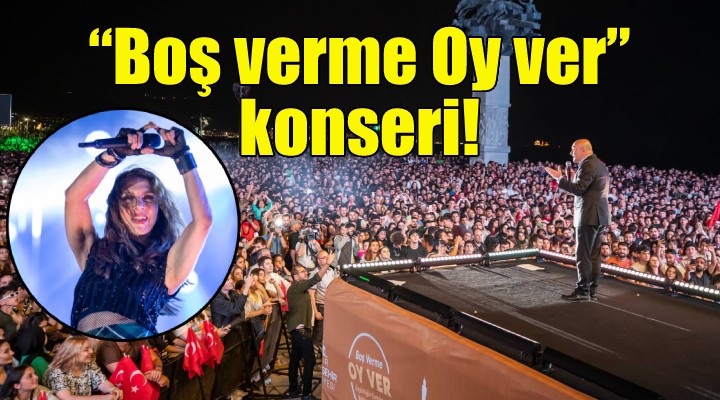 ?zmir Büyük?ehir Belediyesi, 28 May?s Cumhurba?kanl??? ikinci tur seçimi öncesi “Bo? verme oy ver” slogan?yla Sertab Erener konseri düzenledi. Seçim öncesi sand??a kat?l?m oran?n? art?rmada fark?ndal?k yarat?lmas? ve seçmenlerin 28 May?s öncesi moral depolamas? için düzenlenen konser Gündo?du Meydan?’nda büyük bir ?ölene dönü?tü. Meydan? dolduran binlerce ?zmirli, ilk olarak Ersin Show DJ performans?yla co?tu, hep bir a??zdan “Hak, hukuk, adalet” sloganlar? att?. Saatler 21.00’? gösterdi?inde ünlü sanatç? Sertab Erener sahneye ç?kt?. ?zmirliler hep bir a??zdan Erener’in unutulmaz ?ark?lar?n? söyledi.
