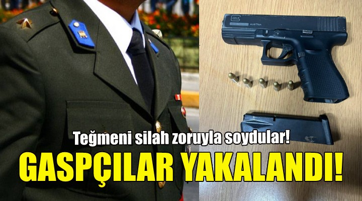 Kar??yaka ilçesinde k?z arkada?? ile sahil kenar?nda oturan Te?men T.Ö.'nün yan?na 4 ?üpheli geldi. Tabanca ç?kartan ?üpheliler, T.Ö.'nün zorla cep telefonunu ve cüzdan?n? ald?. ?üpheliler olay yerinden kaçarken, T.Ö. durumu polis ekiplerine bildirdi. T.Ö.'nün verdi?i e?gal bilgileri do?rultusunda harekete geçen polis, ?üphelilerin olay yerinden taksi ile kaçt???n? tespit etti. ?üphelilerin Bayrakl? ilçesine kaçma ihtimaline kar?? Bayrakl? ?lçe Emniyet Müdürlü?ü Devriye Amirli?i'nde görevli polis memurlar? da yakalama çal??mas?na kat?ld?. Bayrakl? ekiplerinin yapt??? çal??mada 3 ?üpheli Bestekar Yusuf Nalkesen Sokak'ta yakaland?.