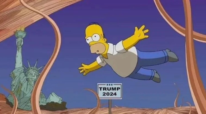 Jean’in payla?t??? görüntüde dizinin ana karakterlerinden Homer Simpson uçarken görülüyor ve arka planda da bir tabela üzerinde “Trump 2024” yaz?yor. Geçmi?te de benzer tahminleri do?ru ç?kan dizinin 2000 y?l?nda yap?lan bir bölümünde ise Trump’?n ABD ba?kan? olaca??na i?aret ediliyor.