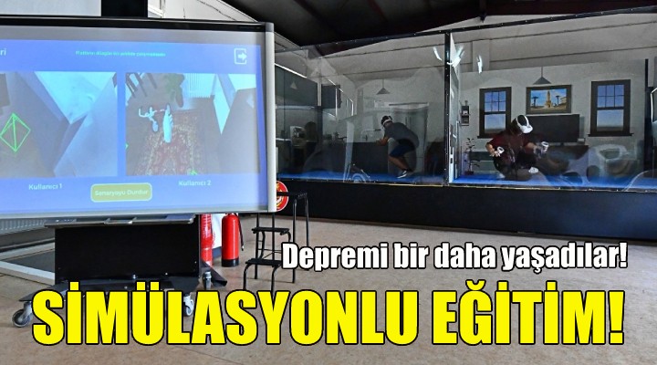 ?zmir Büyük?ehir Belediyesi 30 Ekim ?zmir depreminin ard?ndan birçok çal??may? hayata geçirdi. O çal??malardan biri de ?tfaiye Dairesi Ba?kanl??? taraf?ndan geli?tirilen deprem simülasyonu. Sanal gerçeklik tabanl? bir sistem olan simülasyon, sanal gerçeklik gözlü?üyle de kullan?c?lar?n gerçek bir deprem an?n? ya?amas?n? sa?l?yor. Büyük?ehir Belediyesi, Buca Toros’ta bulunan Yang?n ve Do?al Afet E?itim Merkezi’nde afet bilinci olu?turarak afetlere haz?r toplum yaratmak için yurtta?lara bu kapsamda e?itim veriyor. Deprem ku?a??nda yer alan ?zmir’de olas? deprem an?nda yurtta?lar?n kendilerini nas?l korumalar? gerekti?i, deprem öncesi ve sonras?nda yap?lacaklar? ö?retiliyor.