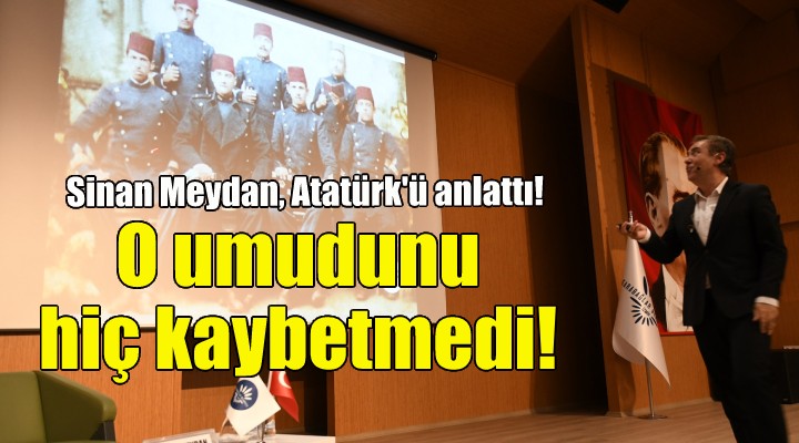 Meydan daha sonra Atatürk’ün çok okuyan, yazan, asker, ulus ve vatan sevgisiyle dolu yönlerini, tarihsel belgeler ve görseller e?li?inde anlatt?. Kendisini en çok etkileyen yönünün ise umudunu hiç kaybetmemesi oldu?unu belirterek, “Milletine sayg?s?n? ve gençli?e olan inanc?n? hep korudu” dedi.