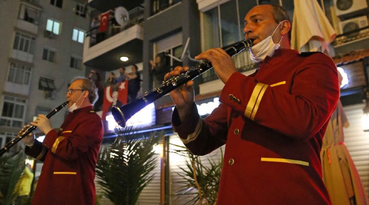 Özellikle ?zmir Mar?? ve Kar??yakal? ?ark?s?nda co?ku adeta tavan yapt?. Dün gece 24.00’da ba?layan soka?a ç?kma yasa?? öncesi evlerinde olan Kar??yakal?lara bir sürpriz yapmak istediklerini belirten Kar??yaka Belediye Ba?kan? Dr. Cemil Tugay, “Her zaman Kar??yakal?lar?n yan?nday?z” diye konu?tu.