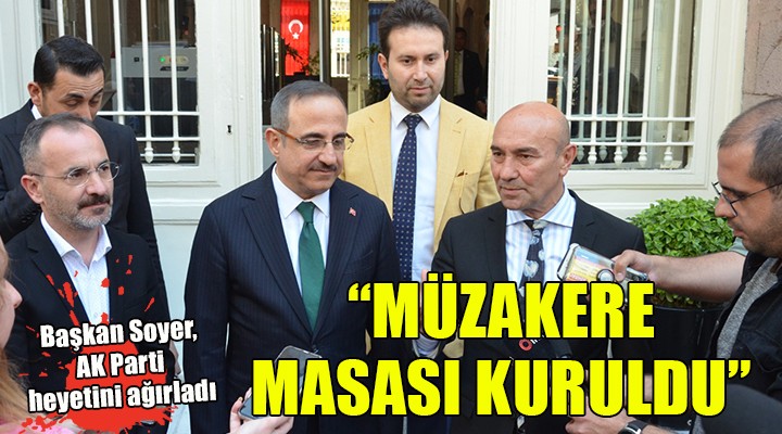 SONKALE?ZM?R-AK Parti ?zmir ?l Ba?kan? Kerem Ali Sürekli, ?zmir Büyük?ehir Belediyesi AK Parti Grup Ba?kanvekili Özgür H?zal ve Yerel Yönetimlerden Sorumlu ?l Ba?kan Yard?mc?s? ?smail Çiftçio?lu ile birlikte bugün ?zmir Büyük?ehir Belediye Ba?kan? Tunç Soyer'i makam?nda ziyaret etti. Yakla??k bir saat süren görü?mede kentin kanayan yaras? haline gelen Basmane Çukuru sorununun masaya yat?r?ld??? ö?renildi.