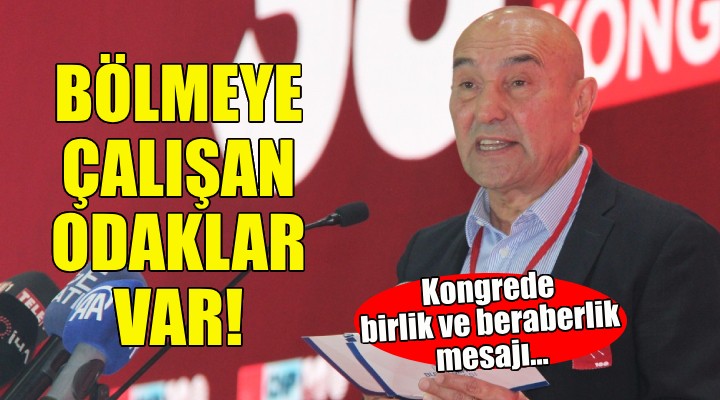 Gaziemir Fuar?zmir'deki CHP ?zmir ?l Kongresi'ne kat?lan ?zmir Büyük?ehir Belediye Ba?kan? Tunç Soyer, salondakilere birlik ve beraberlik ça?r?s? yapt?.