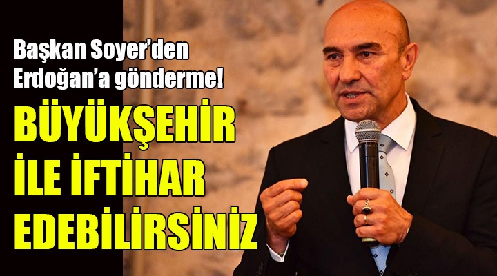 Ba?kan Soyer ayr?ca, "50 bin insan?n d??ar?da kald??? bir depremde 30'ncu günün sonunda bir tek çad?r b?rakmamacas?na herkesi ba??n? sokacak bir yuva ile bulu?turdu ?zmir Büyük?ehir Belediyesi... Sel fekaletinde 2600 i?yeri ve konutla ilgili hasar tespitini ivedilikle yapt?, 7 milyon liral?k bir bedelle, vatanda?lar?m?z?n yaras?n? saracak tedbirler ald?k. Türkiye'de at?k suyun yüzde 97'sini ar?tan ba?ka bir kent yok... Ar?tma tesislerinden 68'incisini en son Foça'da açt?k. Elbette var eksiklerimiz ama hepsini teker teker çözece?iz" ifadelerini kullanm??t?.