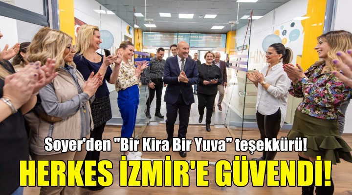 ?zmir Büyük?ehir Belediye Ba?kan? Tunç Soyer, deprem felaketinin ard?ndan s???nacak eve ihtiyaç duyan aileler için ba?latt??? “Bir Kira Bir Yuva” kampanyas?nda eme?i geçenlere te?ekkür etti. 22 ?ubat ak?am? Halk TV’deki özel yay?n için yüzlerce personel ve gönüllünün görev ba??nda oldu?unu hat?rlatan Ba?kan Soyer, ziyaret etti?i ça?r? merkezi çal??anlar?na “??te benim kahramanlar?m. Her ?ey çok daha güzel olacak. ?yi ki vars?n?z. ?yi ki sizin gibi bir ekip benim arkamda duruyor. Sizinle çal??maktan gurur duyuyorum. O gece inan?lmaz bir dayan??ma vard?. Milyonlar sadece bizlerin sözlerine inand?. Ortada ne bir SMS ne de bir hesap numaras? vard?. ?zmir’e ve bizlere herkes güvendi” diye seslendi.