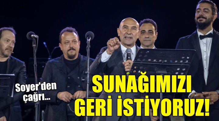 ?zmir Büyük?ehir Belediye Ba?kan? Tunç Soyer, sanatç?lara te?ekkür ederek, “Helal olsun size, harikas?n?z. Bu bir hak mücadelesi ve bu bir uyan?k olma hali. Hikayenin ba??ndan beri öncülük eden Bergama’n?n önceki dönem belediye ba?kan? Sefa Ta?k?n'?, bu yolculu?u ba?latt??? için tebrik ediyorum. Suna??m?z, anas?ndan ayr?lm?? bir çocuk ve biz onu geri istiyoruz. Ana kuca??na, ana yurduna dönsün istiyoruz. Bu ak?am yapt???m?z gibi çok sesli olarak hayk?rmaya devam edece?iz” dedi.